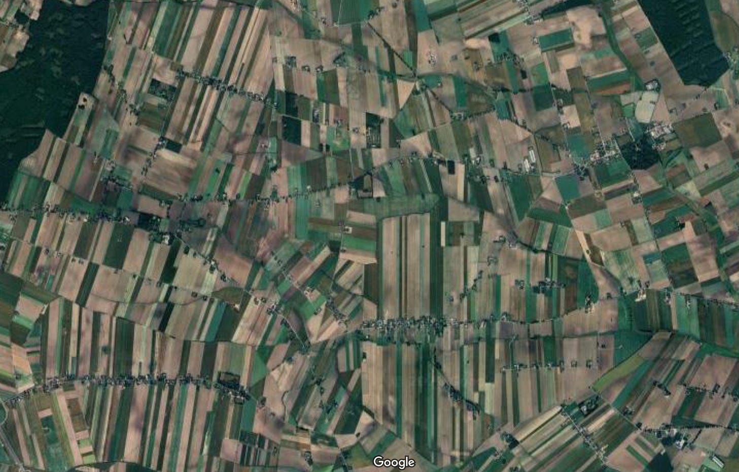 W łódzkim dla odmiany mamy zabudowę typową dla Polski — po prostu chaos. Domy są wszędzie — nie ma ich skupisk, przez co trudno znaleźć jakiś większy obszar niezabudowany.