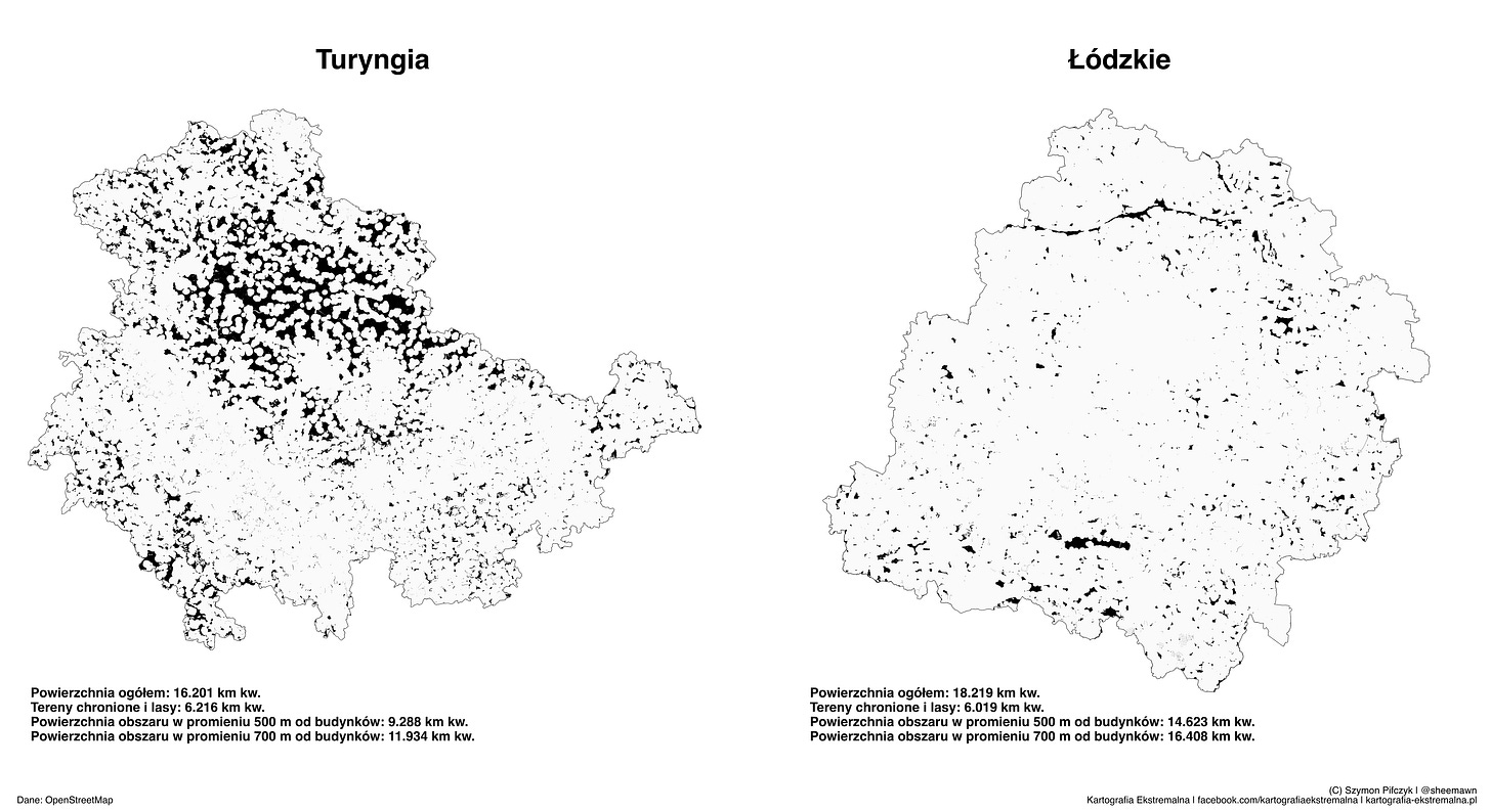 A to przecież bufor 500 metrów od zabudowań — czyli ten, który prezydent zawetował. Jeśli zwiększymy ten bufor do obowiązujących teraz 700 metrów, w łódzkim na budowę wiatraków pozostają w zasadzie tylko tereny odkrywki kopalni Bełchatów (ale wiadomo, tam nie da się ich postawić) i dolina Bzury (tam też raczej zostałyby oprotestowane). W Turyngii dla odmiany mamy do zagospodarowania spokojnie około 10-15% powierzchni landu.